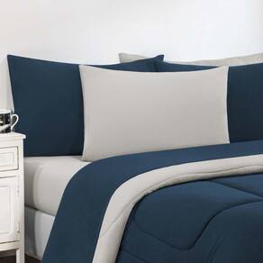 Marca: Enxovais Davy | Estampa: Não se Aplica | Medidas: 01 Edredom Solteiro Dupla Face Liso 1,60m x 2,40m01 Porta Travesseiro 70cm x 50cm01 Lençol de Cima 1,60m x 2,40m 01 Lençol de Baixo para Colchão 0,88m x 1,88m x 0,30m (Elástico em toda a volta)01 Fronha 70cm x 50cm | Número de Peças: 05 Peças | Material: Agodão | Cor Predominante: Azul Marinho/Palha | Cama Indicada: Solteiro