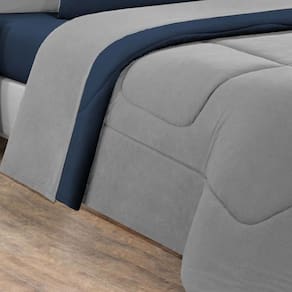 Marca: Enxovais Davy | Estampa: Não se Aplica | Medidas: 01 Edredom Solteiro Dupla Face Liso 1,60m x 2,40m01 Porta Travesseiro 70cm x 50cm01 Lençol de Cima 1,60m x 2,40m 01 Lençol de Baixo para Colchão 0,88m x 1,88m x 0,30m (Elástico em toda a volta)01 Fronha 70cm x 50cm | Número de Peças: 05 Peças | Material: Agodão | Cor Predominante: Cinza/Azul Marinho | Cama Indicada: Solteiro