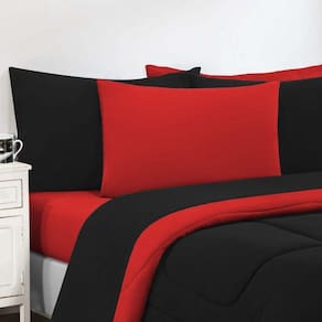 Kit Edredom + Jogo De Lençol Malha 100% Algodão Gran Moratta 5 Peças Solteiro - Preto/vermelho
