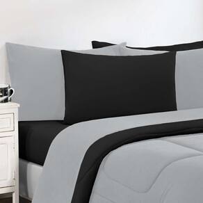 Marca: Enxovais Davy | Estampa: Não se Aplica | Medidas: 01 Edredom Casal Dupla Face Liso 2,00m x 2,20m02 Porta Travesseiros 70cm x 50cm01 Lençol Casal Avulso de Baixo para colchão 1,38x1,98x0,30 (Elástico na volta toda)02 Fronhas 50cm x 70cm | Número de Peças: 06 Peças | Material: Agodão | Cor Predominante: Cinza/Preto | Cama Indicada: Casal