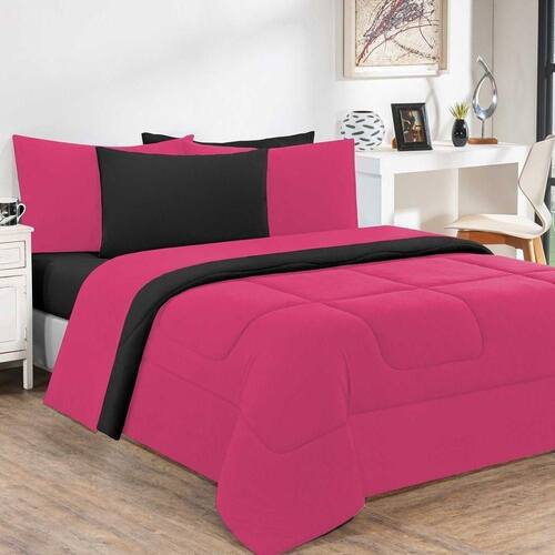 Kit Edredom + Jogo De Lençol Malha 100% Algodão Gran Moratta 6 Peças Queen - Pink /preto