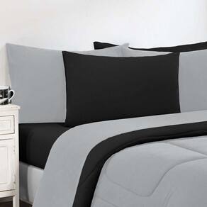 Kit Edredom + Jogo De Lençol Malha 100% Algodão Gran Moratta 7 Peças Casal - Cinza/preto