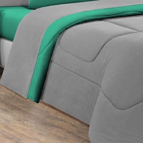 Kit Edredom + Jogo De Lençol Malha 100% Algodão Gran Moratta 7 Peças Casal - Cinza/verde Jade