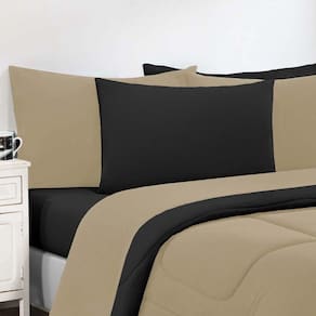 Kit Edredom + Jogo De Lençol Malha 100% Algodão Gran Moratta 7 Peças King - Avelã/preto