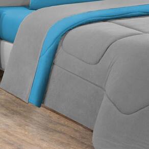 Marca: Enxovais Davy | Estampa: Não se Aplica | Medidas: 01 Edredom King Dupla Face Liso 2,50m x 2,90m02 Porta Travesseiros 70cm x 50cm01 Lençol de Cima 2,50m x 2,90m 01 Lençol Casal de Baixo para colchão 1,93m x 2,03m x 0,30m (Elástico na volta toda)02 Fronhas 70cm x 50cm | Número de Peças: 07 Peças | Material: Agodão | Cor Predominante: Cinza/Azul Turquesa | Cama Indicada: King