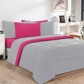 Kit Edredom + Jogo De Lençol Malha 100% Algodão Gran Moratta 7 Peças King - Cinza-pink - Única