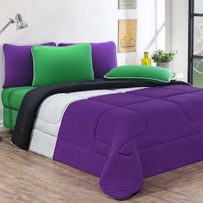 Kit Edredom + Jogo De Lençol Malha 100% Algodão Urbano 7 Peças Queen - Roxo/mescla/preto