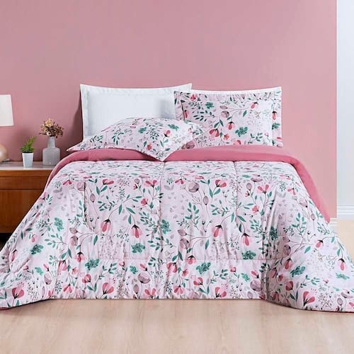 Sua característica dupla face permite que você escolha a estampa floral que mais combina com sua decoração ou seu estado de espírito, adicionando versatilidade ao seu ambiente. As cores vivas e a estampa floral trazem a beleza e a delicadeza da natureza para o seu quarto, criando um espaço acolhedor e charmoso.
