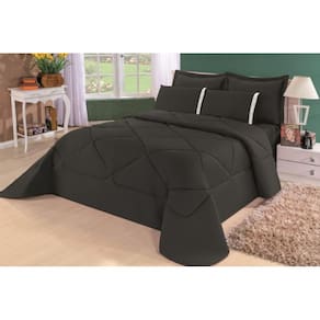Kit Edredom + Lençol Aconchego Dupla Face Casal Queen 6 PÇ Preto Kit Edredom + LENÇOL Aconchego Contém 6 Peças:01 Edredom Dupla Face Casal Queen 2,40m x 2,20m 02 Porta Travesseiro 70cm x 50cm 02 Fronhas com Lesie 70cm x 50cm 01 Lençol De Baixo com Elástico Para colchão de 1,98m x 1,58m x 30cm altura Tecido: Microfibra Composição: 100% Poliéster