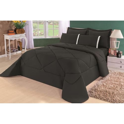 Kit Edredom + Lençol Aconchego Dupla Face Casal Queen 6 Pçs Preto