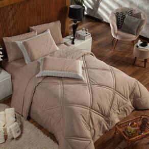 A nova coleção Florença traz toda a sofisticação e aconchego. Por possuírem dupla face, apresentam superfície que valoriza ainda mais as cores, confeccionado em pantográfica computadorizada com lindos desenhos geométricos no edredom! Composto em tecido Percal 200 Fios 80% algodão super macio com 200g de enchimento, agregando ainda mais para seu conforto! Acompanhando também dois porta-travesseiros com detalhes no acabamento em Guipir super moderno! Com a aplicação da renda Guipir se tem mais sofisticação e elegância, bonito e delicado para investir em uma decoração, totalmente em alta e é uma peça presente nas roupas e objetos decorativos por sua fácil composição e delicadeza, podendo facilmente ser utilizada em diversos ambientes para a decoração da casa, deixando tudo muito mais bonito e com um toque romântico. Ideal para decorar, trazer conforto e tornar o quarto ainda mais convidativo e elegante! Confira!
