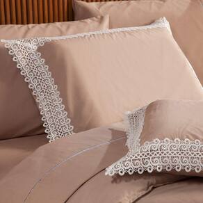 A nova coleção Florença traz toda a sofisticação e aconchego. Por possuírem dupla face, apresentam superfície que valoriza ainda mais as cores, confeccionado em pantográfica computadorizada com lindos desenhos geométricos no edredom! Composto em tecido Percal 200 Fios 80% algodão super macio com 200g de enchimento, agregando ainda mais para seu conforto! Acompanhando também dois porta-travesseiros com detalhes no acabamento em Guipir super moderno! Com a aplicação da renda Guipir se tem mais sofisticação e elegância, bonito e delicado para investir em uma decoração, totalmente em alta e é uma peça presente nas roupas e objetos decorativos por sua fácil composição e delicadeza, podendo facilmente ser utilizada em diversos ambientes para a decoração da casa, deixando tudo muito mais bonito e com um toque romântico. Ideal para decorar, trazer conforto e tornar o quarto ainda mais convidativo e elegante! Confira!