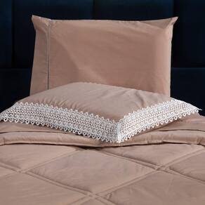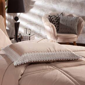 A nova coleção Florença traz toda a sofisticação e aconchego. Por possuírem dupla face, apresentam superfície que valoriza ainda mais as cores, confeccionado em pantográfica computadorizada com lindos desenhos geométricos no edredom! Composto em tecido Percal 200 Fios 80% algodão super macio com 200g de enchimento, agregando ainda mais para seu conforto! Acompanhando também um porta-travesseiro com detalhes no acabamento em Guipir super moderno! Com a aplicação da renda Guipir se tem mais sofisticação e elegância, bonito e delicado para investir em uma decoração, totalmente em alta e é uma peça presente nas roupas e objetos decorativos por sua fácil composição e delicadeza, podendo facilmente ser utilizada em diversos ambientes para a decoração da casa, deixando tudo muito mais bonito e com um toque romântico. Ideal para decorar, trazer conforto e tornar o quarto ainda mais convidativo e elegante! Confira!