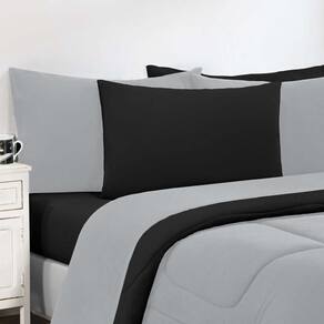 Marca: Enxovais Davy | Estampa: Não se Aplica | Medidas: 01 Edredom Casal Dupla Face Liso 2,00m x 2,20m02 Porta Travesseiros 70cm x 50cm | de Peças: 03 Peças | Material: Agodão | Cor Predominante: Cinza/Preto | Cama Indicada: Casal