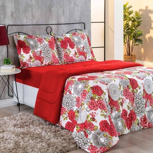 Marca: Enxovais Davy | Estampa: Não se Aplica | Medidas: 01 Edredom King Dupla Face 2,50m x 2,90m02 Porta Travesseiros 70cm x 50cm | de Peças: 03 Peças | Material: Agodão | Cor Predominante: Floral Vermelho | Cama Indicada: King