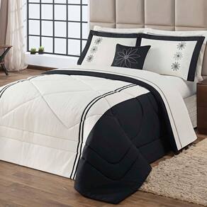 Kit edredom marguerite queen 05 peças 100% poliéster preto