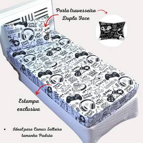 Kit Edredom Micropercal 200 fios Solteiro Infantil Dupla Face Game 4 peças Preto