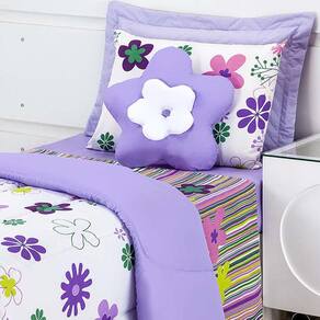 Kit Edredom Solteiro 3 Peças Garden Lilás A coleção GARDEN é uma escolha perfeita para quem deseja um quarto moderno e colorido. O Edredom GARDEN PINK/LILÁS é um item versátil que pode ser tanto como peça decorativa quanto para o conforto numa noite fria. Esse kit contém 03 peças, sendo elas: 01 Edredom tamanho solteiro, 01 Fronha e 01 Almofada Flor. CONTEÚDO DA EMBALAGEM - 01 Edredom 2,10m x 1,50m - 01 Fronha 70cm x 50cm - 01 Almofada Flor 45cm de Diâmetro COMPOSIÇÃO TEXTIL Tecido Superior: 100% Poliéster Tecido Inferior: 100% Poliéster Enchimento: 100% Poliéster Tecido Almofada: 100% Poliéster FICHA TÉCNICA - Quantidade de peças: 03 - Cor: Garden Lilás - Estampado: Sim - Bordado: Não - Fabricação: Matelado em linha ORIENTAÇÕES PARA LAVAGEM - Lavar a mão; - Não lavar junto com outros produtos; - Não deixar o produto de molho, pois roupas de cama de cor forte podem desbotar; - Utilizar sabão neutro. Evite sabão do tipo limpeza profunda e/ou tira manchas; - Lavar com temperatura máxima de 30C; - Não alvejar / não branquear; - Não secar em secador rotativo; - Não lavar a seco; - Passar com temperatura baixa temperatura máxima de 110C ; - Vapor pode causar danos irreversíveis. ATENÇÃO - Verificar as dimensões do produto antes da compra. - É necessário levar em consideração a altura da cama ou a altura do box da cama + colchão, para que o caimento do produto seja perfeito. - Siga as orientações para lavagem para aumentar a vida útil das peças - Variação das cores pode ocorrer de acordo com a configuração do monitor. - Pode ocorrer variação de tonalidade de acordo com o lote do tecido. - As peças decorativas não estão inclusas neste produto. - Foto ilustrativa. Marca: Não Informado Ean: 7898441898682