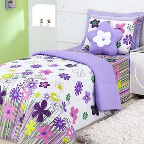 Kit Edredom Solteiro 3 Peças Garden Lilás A coleção GARDEN é uma escolha perfeita para quem deseja um quarto moderno e colorido. O Edredom GARDEN PINK/LILÁS é um item versátil que pode ser tanto como peça decorativa quanto para o conforto numa noite fria. Esse kit contém 03 peças, sendo elas: 01 Edredom tamanho solteiro, 01 Fronha e 01 Almofada Flor. CONTEÚDO DA EMBALAGEM - 01 Edredom 2,10m x 1,50m - 01 Fronha 70cm x 50cm - 01 Almofada Flor 45cm de Diâmetro COMPOSIÇÃO TEXTIL Tecido Superior: 100% Poliéster Tecido Inferior: 100% Poliéster Enchimento: 100% Poliéster Tecido Almofada: 100% Poliéster FICHA TÉCNICA - Quantidade de peças: 03 - Cor: Garden Lilás - Estampado: Sim - Bordado: Não - Fabricação: Matelado em linha ORIENTAÇÕES PARA LAVAGEM - Lavar a mão; - Não lavar junto com outros produtos; - Não deixar o produto de molho, pois roupas de cama de cor forte podem desbotar; - Utilizar sabão neutro. Evite sabão do tipo limpeza profunda e/ou tira manchas; - Lavar com temperatura máxima de 30C; - Não alvejar / não branquear; - Não secar em secador rotativo; - Não lavar a seco; - Passar com temperatura baixa temperatura máxima de 110C ; - Vapor pode causar danos irreversíveis. ATENÇÃO - Verificar as dimensões do produto antes da compra. - É necessário levar em consideração a altura da cama ou a altura do box da cama + colchão, para que o caimento do produto seja perfeito. - Siga as orientações para lavagem para aumentar a vida útil das peças - Variação das cores pode ocorrer de acordo com a configuração do monitor. - Pode ocorrer variação de tonalidade de acordo com o lote do tecido. - As peças decorativas não estão inclusas neste produto. - Foto ilustrativa. Marca: Não Informado Ean: 7898441898682