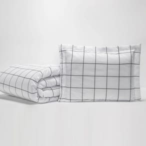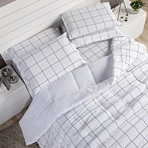 Kit Edredom Solteiro Atual Estampa Grid Casaborda 2 Peças A coleção Atual é moderna e descolada. O lindo Kit de Edredom em estampa Grid torna o ambiente mais descontraído e leve. Confeccionada em 180 fios, tecido 100% algodão. O porta traveseiro também é confeccionado em estampa Grid. Conheça também o Jogo de Lençol, e adquira a coleção completa, deixando seu quarto ainda mais legal!Composição:1 edredom 2,40m x 1,80m2 porta travesseiros 75cm x 55cm Tamanho - Solteiro