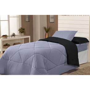 Kit Edredom Solteiro Dupla Face Ternura 4 Peças Preto/ Cinza