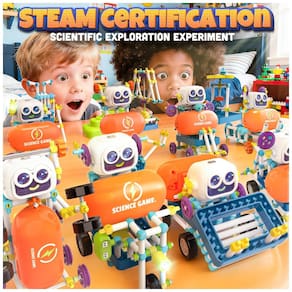 O SMILESSKIDDO 50-in-1 Robot Kit (modelo RC8025E) é um conjunto STEM com 438 peças que permite montar até 50 modelos diferentes, incluindo robôs, carros e outras estruturas mecânicas em vários níveis de dificuldade. O kit trabalha conceitos como mecanismos de biela/manivela, engrenagens, gerador de manivela, sensores simples, mecanismos excêntricos, movimento circular, inércia e energia, voltado para crianças em torno de 6 a 13 anos.