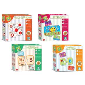 Kit Educativo 4 Jogos De Encaixe Peças Em Madeira - Nig Super Kit para ajudar as criança estimular o raciocínio e a percepção visual de forma divertida. Jogo Educativo De Encaixar Cores E Formas - NIG Brinquedos Esse divertido Jogo De Encaixe vai ensinar a criança a associar cores e formas que cada figura simboliza. Contém 30 peças em madeira reciclada seis placas com cinco peças cada para encaixar coloridas e resistentes. Jogo Educativo Soletrando - NIG Brinquedos No jogo Soletrando a criança aprende a reconhecer e escrever as palavras brincando. Ela terá que soletrar, encaixar cada letra e formar a palavra e a figura.São 12 palavras com três, quatro ou cinco letras. Contém 47 peças grandes em madeira reciclada, coloridas e resistentes. Jogo Educativo Descobrindo a Matemática - NIG Brinquedos O Jogo Descobrindo a Matemática é um jogo pedagógico, onde a criança vai aprender as primeiras noções de adição e subtração. Primeiro ela conta as figuras e realiza a operação matemática, depois encaixa o número correspondente ao resultado.Encaixes diferentes. Contém 20 peças grandes em madeira reciclada, coloridas e resistentes. Jogo Educativo Descobrindo O Alfabeto - NIG Brinquedos O Jogo Descobrindo O Alfabeto é um material didático para crianças em fase pré-escolar; indicado nas listas de material das escolas. Esse jogo traz a associação de cada letra do alfabeto ao objeto que começa com a mesma letra. Contém 52 peças grandes em madeira reciclada com encaixes diferentes, coloridas e resistentes. Conteúdo da Embalagem: 1 Jogo Educativo De Encaixar Cores E Formas 1 Jogo Educativo Soletrando 1 Jogo Educativo Descobrindo a Matemática 1 Jogo Educativo Descobrindo O Alfabeto Medidas da Embalagem: Peso: 600 g Altura: 16 cm Largura: 30 cm Comprimento: 26 cm - Certificado BRA19/01668 - Registro Inmetro - 006901/2019 Ean: 7898667517688