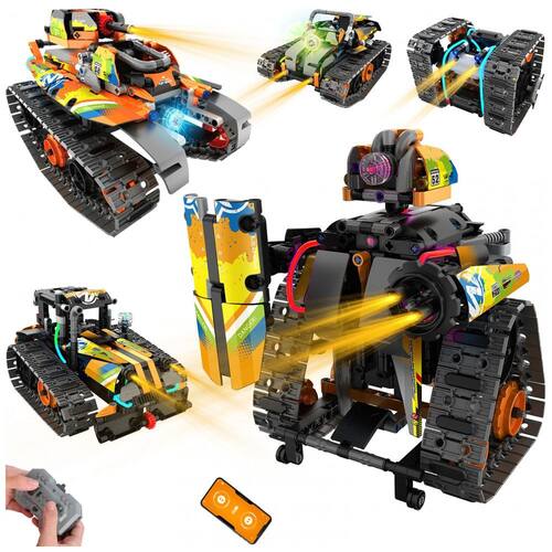 Montagem de 5 modelos diferentes (tanque, robô, carro de corrida, bulldozer, cubo rolante)