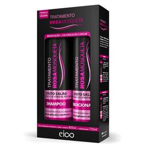 Eico Kit Shampoo + Condicionador Rosa Mosqueta O Shampoo é ideal para a higienização diária, limpando os fios, sem ressecar. Ele também prepara o cabelo para outros tratamentos e mantém a saúde do cou