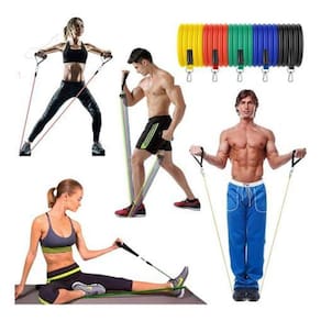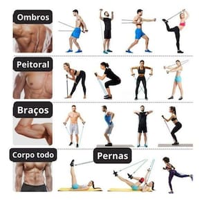 Kit Elástico para Treino em Casa: Defina e Fortaleça Seus Músculos com Qualidade e Conforto O Kit Elástico para Treino que vai transformar sua rotina de exercícios em casa Com esse conjunto de elásticos de alta qualidade, você terá a praticidade e a segurança necessárias para tonificar, fortalecer e definir seus músculos no conforto do seu lar. Características Incríveis: - Versatilidade e Variedade: O kit contém 5 extensores elásticos feitos de látex natural de alta qualidade, cada um com uma resistência diferente: Amarelo 4,5 kg , Vermelho 6,8 kg , Azul 9 kg , Verde 11,3 kg e Preto 13,6 kg . Varie e personalize seu treino de acordo com suas necessidades. - Exercícios Personalizados: Use de 1 a 5 elásticos ao mesmo tempo para criar diferentes níveis de resistência, adaptando seu treino de acordo com seu progresso. - Acessórios Ergonômicos: O kit inclui 2 puxadores ergonômicos e 2 alças de punho ou tornozelo, permitindo uma variedade de exercícios para todo o corpo. - Âncora de Porta Segura: A âncora de porta proporciona versatilidade ao permitir que você fixe os elásticos de forma segura em portas, expandindo as possibilidades de exercícios. - Bolsa de Transporte e Guia de Exercícios: Mantenha tudo organizado com a bolsa de transporte inclusa. Além disso, o guia de exercícios fornecerá orientações para maximizar seus resultados. Itens Inclusos no Kit: 5 Extensores Elásticos Amarelo, Vermelho, Azul, Verde, Preto 2 Puxadores Ergonômicos 2 Alças de Punho ou Tornozelo 1 Âncora de Porta 1 Bolsa de Transporte e Armazenamento 1 Guia de Exercícios Cuidados Importantes: Os elásticos possuem um comprimento de 1,20m. Evite esticá-los além de 2,20m. Recomendamos o uso para exercícios de baixa intensidade, auxiliando no aquecimento e na preparação das articulações. Nota: A imagem é meramente ilustrativa e não representa a escala real dos elásticos. Transforme sua casa em um verdadeiro centro de treinamento com nosso Kit Elástico para Treino