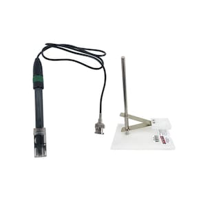 KIT ELETRODO DO PH TIPO COMBINADO MOD. EPC-70 + SUPORTE PARA ELETRODO MOD. SEPC-100 REGULÁVEL P/ 2 ELETRODOS DE PH E 1 DE TEMPERATURA DESCRIÇÃO: O eletrodo de pH combinado mod. EPC-70 possui o invólucro de policarbonato e vidro, que garantem o máximo de durabilidade, precisão e alto desempenho em inúmeras aplicações. Sua escala é de 0 ~14 pH, o cabo possui aproximadamente 95 cm incluindo o conector BNC. O ponto de zero pH é de 7 ± 0,25 pH para medições precisas e confiáveis. Suporte para eletrodo com altura ajustável e encaixe para 2 eletrodos e 1 sensor. DESTAQUES: Construído em Policarbonato e vidro, oferece maior durabilidade e precisão. ESPECFICAÇÕES TÉCNICAS: Escala: 0 ~14 pH Temperatura de operação do eletrodo: de 0 ~ 80 (°C) Valor ponto zero pH: 7 ± 0,25 pH Erro ácido: ?15 mV Material do invólucro: Cominado de Policarbonato e vidro Conector: BNC Dimensões do Cabo: 95 cm aproximadamente (incluindo o conector BNC) Dimensões do conector 29,8 mm x 13,7 mm Peso: 45 g ACESSÓRIOS FORNECIDOS: Eletrodo Mod. EPC-70 Refil para reposição da solução KCL Suporte regulável SEPC-100