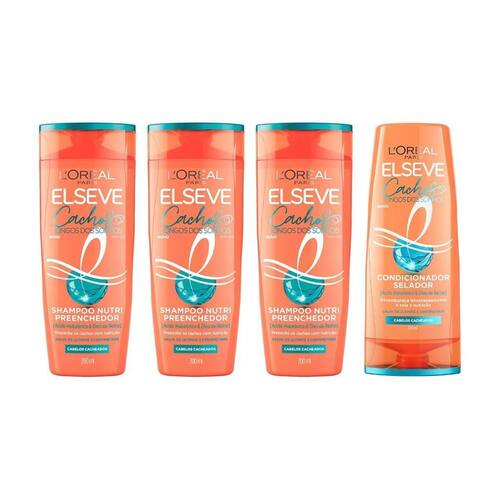 O kit elseve cachos dos sonhos com 3 shampoo de 200ml e 1 condicionador de 200ml foi especialmente desenvolvido para cabelos cacheados, proporcionando limpeza suave, hidratação profunda e definição dos cachos sem pesar. Sua fórmula com ácido hialurônico e óleo de rícino nutre intensamente, reduz o frizz e garante cachos soltos, macios e com movimento natural.