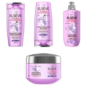 Kit Elseve Hidra Hialurônico Shampoo 200ml + Condicionador 200ml Elseve Hidra Hialurônico + Rímel Elseve Hidra Hialurônico 300g + Creme de pentear Elseve Hidra Hialurônico 250g