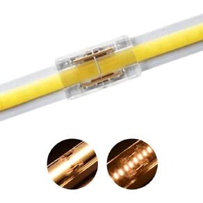 Conector rápido de 2 pinos (8mm), ideal para ligar fitas LED COB de forma prática e sem necessidade de solda. Permite uma conexão firme e segura, garantindo boa condução elétrica e iluminação contínua, sem falhas.