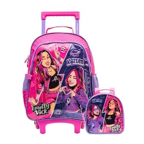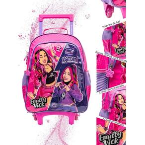 Para as pequenas fãs das influenciadoras mais queridas do momento, o kit emilly vick & katlen é o combo perfeito entre estilo, praticidade e muito charme a arte exclusiva traz as personagens em destaque com aplicação de pvc, gliter e relevo que dá vida à estampa - cheia de atitude e cores vibrantes Mochila de rodinha: Produzido em poliéster Duplo compartimento Frente em pvc com glitter Bolso frontal espaçoso com zíper Hastes com regulagem de altura, que se adaptam ao crescimento da criança. Rodas em gel super deslizantes, que proporcionam uma condução suave e silenciosa. Alça de mão reforçada e base elevada para mais estabilidade. Licenciada oficialmente Alça de mão acolchoada Puxadores emborrachados Dimensões: - largura: 30cm - altura: 40cm - comprimento: 15cm Lancheira: Estampa exclusiva Abertura ampla com zíper reforçado Forro térmico especial que mantém a temperatura dos alimentos Alça de mão e de costas ajustável Acabamento de alta qualidade e costuras reforçadas Material resistente e fácil de limpar Alça carona nas costas para fixação no carrinho Perfeita para lancheira escolar, passeios e viagens Cursores personalizados