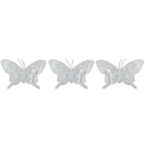 Kit Enfeite De Natal C/3 Borboletas Brancas P Arvore 07Cm