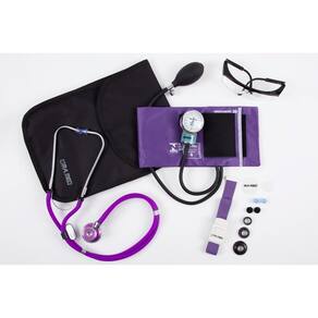 Kit enfermagem acadêmico completo roxo pa med Kit composto por: 01 aparelho p.A. Med nylon com fecho de contato . 01 estetoscópio rappaport com acessórios. 01 bolsa prática e ergonômica. 01 garrote. 01 óculos de proteção. Ap. Pressão art. Adulto nylon fecho de contato - p.A. Med Aparelho arterial de alta precisão e sensibilidade com sistema de fecho de contato que proporciona maior praticidade e facilidade no manuseio, obtendo um melhor diagnóstico seguro e confiável, testado rigorosamente pelo controle de qualidade p.A. Med e aferido pelo inmetro, 100% com selo de verificação inicial, acompanha bolsa exclusiva. Composição: Braçadeira: confeccionada em tecido nylon, flexível e antialérgico utilizando fecho de contato Manguito: fabricado em pvc, duas saídas, sem emendas, de alta durabilidade. Manômetro: aneróide com escala de 0 a 300 mmhg, divisão de escala 2 mmhg, caixa de metal altamente resistente com presilha de metal, contendo o nº da portaria do inmetro no visor e o respectivo selo de vistoria no produto em forma de lacre e certificado individual que acompanha o produto. Pera insufladora: fabricado em pvc, com sistema de fluxo de ar em metal, com de aço inox de alta durabilidade. Válvula: metal altamente resistente com regulagem de saída de ar sensível. Estetoscópio rappaport - p.A. Med O estetoscópio rappaport é indicado para a ausculta cardíaca e pulmonar. Completo com tubo duplo para ausculta mais precisa, possui cinco tipos diferentes de auscultadores, para detectar sons dos batimentos cardíacos, pulmonar e corporal de baixa e média frequência com maior distinção. Composição: Auscultador/campânula: metal de alta durabilidade, partes acompanham a cor do tubo, realiza auscultação precisa de sons de baixa e alta frequência cardio pulmonar . Anel: latão nobre cromado com rosca para melhor travamento da membrana/diafragma. ngulo: biauricular em de latão cromado resistente de alta durabilidade com ajuste automático através de mola de aço cromado. Olivas: formato anatômico em pvc macio e atóxico. Tubo: dois tubos condutores para melhor condução dos sons, em pvc flexível e atóxico para ausculta mais precisa. Diafragma/membrana: alta sensibilidade. Formato anatômico em pvc macio e atóxico. Acessórios: peças sobressalentes que possibilita a formação de diversos modelos de estetoscópio, sendo os mais usuais para o tamanho adulto ausculta do pulmão e coração e infantil ou neonatal para pulmão e coração. Acompanha: placa para identificação do proprietário. Especificações técnicas Esfigmomanômetro Tamanho: adulto. Modelo: fecho de contato. Medida da braçadeira: 52x14 Abrangência circunferência do braço: 18 à 36 cm Tamanho manguito: 12 x 22 cm Aprovação: portaria inmetro/dimel: nº 322 de 11/09/09. Estetoscópio Tamanho: adulto. Modelo: rappaport Diâmetro auscultador cardiológico/pulmonar: 4,5 cm / 3 cm Tamanho tubo: 57 cm Peso: 0,210 g Acompanha manual de instruções: sim Fabricante: p.A. Med linha kit acadêmico : 2 anos contra defeito de fabricação Registro ministério da saúde / anvisa / aparelho : 80540449001. Registro ministério da saúde / anvisa / estetoscópio: 80540449003. Nossos produtos atendem aos mais exigentes consumidores na área da saúde, sendo eles médicos, enfermeiros, profissionais de saúde, estudantes e consumidores finais. Em caso de dúvidas, seguimos à disposição pelo campo de perguntas. Dúvidas frequentes: - o produto tem - r. 2 anos de , contra defeitos de fabricação. Atenção: não trocamos as cores do pedido após a efetivação da compra.
