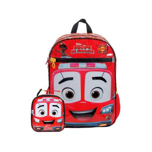 Kit Escolar Equipe Resgate Mochila de Costas + Lancheira Térmica Mochila de Costas: Confeccionada em Poliéster Alças de costas reguláveis e alça de mão 2 compartimentos espaçosos 2 bolsos laterais para garrafa Design exclusivo Fechamento em zíper Puxadores personalizados Medidas aproximadas: Altura: 40 cm Largura: 15 cm Comprimento: 30 cm