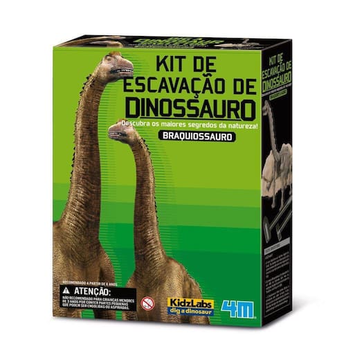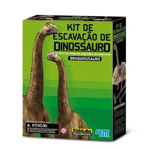Este Kit Escavação Braquiossauro inclui um bloco de gesso com esqueleto de dinossauro embutido e ferramentas de escavação, especialmente projetadas para ajudarem a escavar o esqueleto.