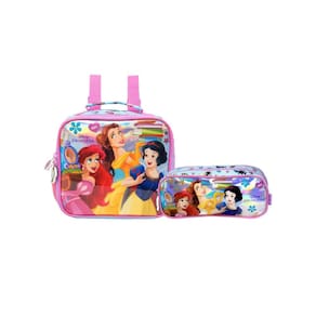Design exclusivo: estampa das princesas e com detalhes em glitter. Fechamento por zíper: facilita o acesso ao compartimento principal. Alças de mão e costas: versatilidade para carregar da forma que preferir. Faixa de tiras adesivas: permite acoplar a lancheira na mochila. Isolamento térmico: mantém os alimentos frescos por mais tempo. Detalhes em glitter: deixa a lancheira ainda mais divertida e fashion.