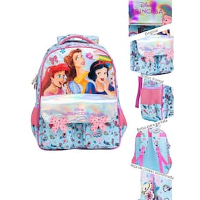 Design exclusivo: estampa das princesas e com detalhes encantadores. Fechamento por zíper: facilita o acesso aos compartimentos. Alças de mão e costas acolchoadas: conforto e versatilidade para carregar da forma que preferir. Dois compartimentos: espaço amplo para organizar livros, cadernos e outros materiais. Bolsos laterais: ideal para guardar garrafinhas ou outros itens pequenos.
