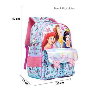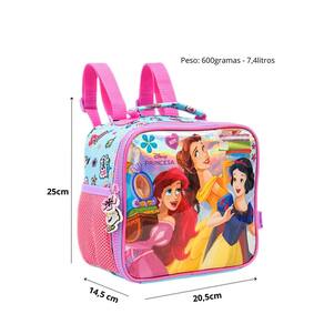 Design exclusivo: estampa das princesas e com detalhes encantadores. Fechamento por zíper: facilita o acesso aos compartimentos. Alças de mão e costas acolchoadas: conforto e versatilidade para carregar da forma que preferir. Dois compartimentos: espaço amplo para organizar livros, cadernos e outros materiais. Bolsos laterais: ideal para guardar garrafinhas ou outros itens pequenos.