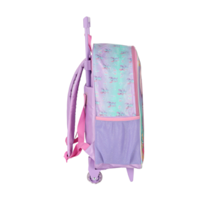 Material resistente e de alta durabilidade Zíperes personalizados com puxadores temáticos Estampa oficial Disney / Luxcel Design moderno em tons de rosa, lilás e verde-água Ideal para uso diário, escola, passeios e viagens