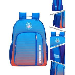 Para os pequenos apaixonados pelo futebol e pela torcida, essa mochila do esporte clube bahia é a combinação perfeita de estilo, conforto e praticidade para a rotina escolar. Principais características: - design esportivo com estampa exclusiva e logo em patch de pvc vincado que destaca toda a paixão pelo time. - alças acolchoadas e ajustáveis que garantem conforto e encaixe perfeito nas costas. - compartimento principal espaçoso, ideal para organizar livros e materiais escolares. - bolsos laterais em tela para garrafa, para manter a hidratação sempre à mão. - zíper de dentes resistentes com puxadores em corda que facilitam a abertura e o fechamento. - forro personalizado que reforça a exclusividade e o cuidado nos detalhes da linha bahia xeryus. Essa mochila é a parceira ideal para acompanhar o ritmo da escola com muita energia, estilo e personalidade Dimensões: - largura: 30cm - altura: 40cm - comprimento: 15cm Peso: 450gr