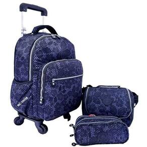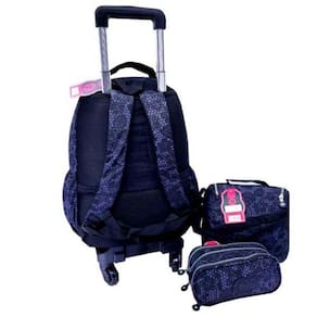 Kit Escolar Carrinho Mochila + Lancheira + Estojo MC3692 Esta mochila pode ser usada de duas formas: 1 nas costas 2 com puxador - praticas rodinhas que deslizam em giro 360 graus - 4 rodas de giro 360 graus - otima para ESCOLAR e viagens- amplo espaÁo interno e ainda conta com compartimento seguro e especifico para notebook- 2 bolsos laterais para garrrafinhas e objetos de facil acesso- compartimento principal grande- 3 BOLSOS frontais espaÁosos COM ZIPER para necessaire,carteira, documentos, chave, estojo etc- Puxador reforÁado com niveis de regulagem de altura, opÁao excelente quando nas costas- alÁas de costas acolchoadas e reforÁadas Medidas aproximadas em cm LxPxA 32x19x46 Na Ello você encontra o Kit Escolar Juvenil super reforçado.