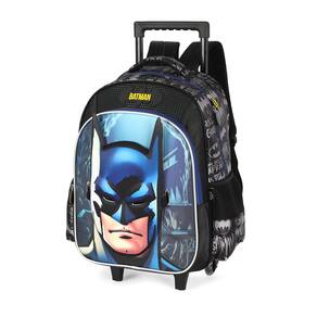 1. Mochila de Rodinhas G Luxcel Batman Destaque: Estampa frontal poderosa do rosto do Batman (Efeito 3D/Relevo). Funcionalidade: Carrinho embutido, haste retrátil e rodinhas resistentes para fácil locomoção. Versatilidade: Possui alças de costas e alça de mão. Organização: Amplo espaço (Tamanho G), bolso frontal e bolsos laterais em mesh para garrafa.