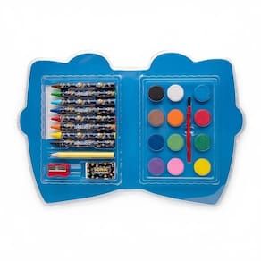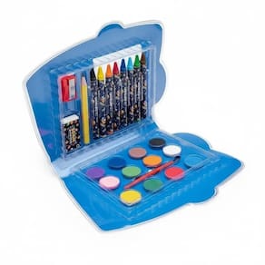 - conteúdo do estojo: 12 cores de tinta aquarela, 8 gizes de cera coloridos, 1 pincel, 1 lápis grafite, 1 borracha macia, 1 apontador