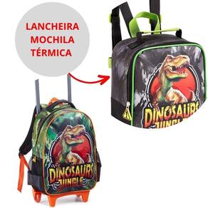 Kit Mochila Com Rodas Lancheira Estojo Escolar Dinossauro