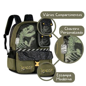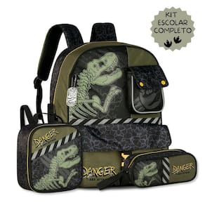 O Kit Escolar Infantil Dinossauro com Mochila de Costas, Lancheira Térmica e Estojo é a escolha perfeita para acompanhar os meninos durante a rotina escolar com conforto, organização e muito estilo. A Mochila de Costas TX25027J é confeccionada em poliéster de alta qualidade com detalhes em ripstop e possui estampa moderna de dinossauro em tons de verde. Seu compartimento principal é espaçoso e com fechamento em zíper, ideal para cadernos e livros. Conta ainda com dois bolsos frontais para manter os acessórios organizados e bolsos telados laterais para garrafinhas. Suas alças de costas são ajustáveis e acolchoadas, garantindo conforto no transporte, e a alça de mão superior traz mais praticidade no dia a dia. Acompanha chaveiro personalizado. Dimensões aproximadas: 40x30x13cm. A Lancheira Térmica TX25028L mantém os alimentos bem conservados graças ao revestimento térmico interno. Produzida em poliéster com frente em telado duplo e etiqueta de borracha, possui fechamento em zíper, alça de costas regulável, alça de mão superior e alça carona que permite acoplar diretamente na mochila de rodinhas ou malas. Dimensões aproximadas: 23x20x11cm. O Estojo TX25029E completa o kit oferecendo espaço interno para organizar todos os materiais menores, como lápis, canetas e borrachas. É confeccionado em poliéster resistente, com frente em telado duplo, puxador de zíper personalizado e design moderno de dinossauro. Dimensões aproximadas: 21x9x6cm. Esse kit é ideal para quem prefere mochila de costas, oferecendo praticidade, resistência e estilo em um só conjunto. Com estampa exclusiva e acabamento de qualidade, é perfeito para pais que procuram produtos duráveis e funcionais para a volta às aulas. Marca: Não Informado Ean: 7795028689377