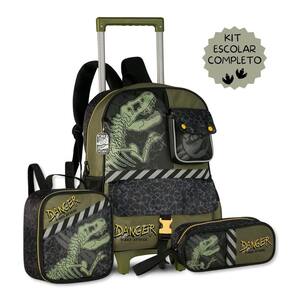 Kit Escolar Dinossauros Mochila Rodinhas Lancheira E Estojo
